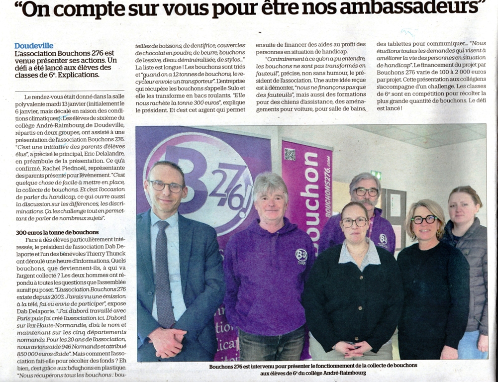 BOUCHONS 276 finance des aides au profit de personnes en situation de #handicap par la collecte de TOUS les #bouchons et #couvercles en #plastique en #Normandie